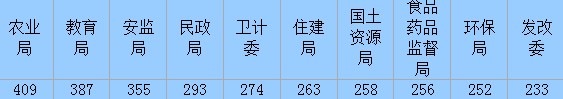 市直部門中,市農(nóng)業(yè)局(409條)、市教育局(387條)、市安監(jiān)局(355條)、市民政局(293條)、市衛(wèi)計(jì)委(274條)、市住建局(263條)、市國土資源局(258條)、市食品藥品監(jiān)督管理局( 256條)、市環(huán)保局(252條)、市發(fā)改委(233條)分列前十名。