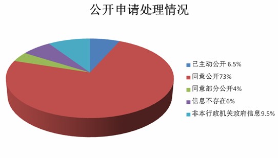 2015年,全市受理75件政府信息公開申請(qǐng),已全部答復(fù)申請(qǐng)人,答復(fù)率100%。其中,屬于已主動(dòng)公開范圍數(shù)5件,占6.7%,“同意公開”的55件,占73%,“同意部分公開”的3件,占4%,“信息不存在”的5件,占6.7%,“非本行政機(jī)關(guān)政府信息”的7件,占9.3%。