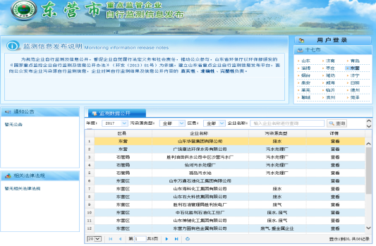 11、推進(jìn)環(huán)境保護(hù)信息公開。一是進(jìn)一步推進(jìn)空氣質(zhì)量、水環(huán)境質(zhì)量、污染物排放、污染源、建設(shè)項(xiàng)目環(huán)評(píng)等信息公開。2016年,市環(huán)保局主動(dòng)公開信息585余條,公開污染源環(huán)境監(jiān)管信息82條。開設(shè)了“實(shí)時(shí)空氣質(zhì)量狀況”、“東營(yíng)市環(huán)境空氣質(zhì)量發(fā)布系統(tǒng)”專欄,實(shí)時(shí)發(fā)布中心城區(qū)及縣區(qū)空氣質(zhì)量實(shí)時(shí)監(jiān)測(cè)數(shù)據(jù),并采用大眾易懂的術(shù)語對(duì)空氣質(zhì)量進(jìn)行解讀,提示首要污染物和監(jiān)測(cè)數(shù)值及健康指引。設(shè)置“污染源環(huán)境監(jiān)管信息公開”和“重點(diǎn)監(jiān)管企業(yè)自行監(jiān)測(cè)信息發(fā)布”兩個(gè)專欄,實(shí)現(xiàn)了對(duì)全市57家重點(diǎn)污染源自行監(jiān)測(cè)信息公開,對(duì)2016年1至12月份全市國(guó)控企業(yè)廢水、廢氣監(jiān)督性監(jiān)測(cè)數(shù)據(jù)進(jìn)行了公開。