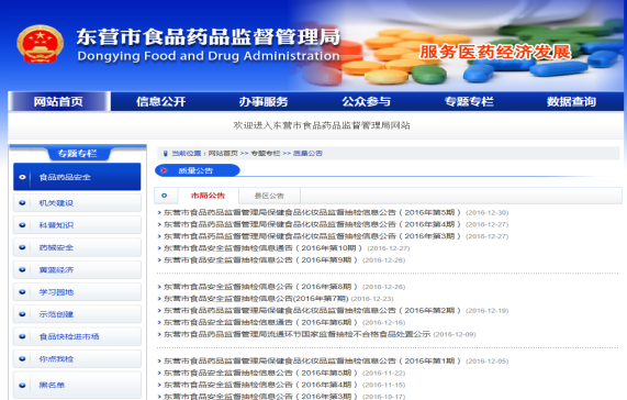 三是推進(jìn)食品藥品安全信息公開。制定了《食品藥品監(jiān)督抽檢信息公開程序》,在市食品藥品監(jiān)督管理局門戶網(wǎng)站設(shè)置了“質(zhì)量安全公告”專欄,采取全市統(tǒng)一發(fā)布方式,及時(shí)公布市、縣兩級(jí)食品、藥品、保健食品、化妝品、醫(yī)療器械監(jiān)督抽檢結(jié)果及不合格產(chǎn)品后處置情況,推進(jìn)食品藥品抽檢信息公開。印發(fā)了《食品藥品行政處罰案件信息公開暫行辦法》,對(duì)符合公開條件的行政處罰案件,通過網(wǎng)站每月定時(shí)向社會(huì)公開。要求所有縣級(jí)食品藥品監(jiān)管部門確定行政處罰案件信息公開網(wǎng)址,并及時(shí)公開有關(guān)處罰信息。重點(diǎn)做好守護(hù)舌尖專項(xiàng)整治、網(wǎng)上非法售藥整治、醫(yī)療器械整治等專項(xiàng)行動(dòng)信息公開,及時(shí)公布專項(xiàng)行動(dòng)進(jìn)展、經(jīng)驗(yàn)做法、工作成效,提高了監(jiān)管的透明度。對(duì)食品藥品監(jiān)督抽檢、行政處罰、專項(xiàng)整治及消費(fèi)警示等信息,都在第一時(shí)間通過政府門戶網(wǎng)站等平臺(tái)向社會(huì)進(jìn)行公開。2016年,共發(fā)布食品藥品安全信息700余條,其中監(jiān)督抽檢信息67條,行政處罰信息9條,消費(fèi)警示9條,其他監(jiān)管工作信息600余條。