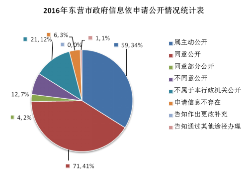 2016年,東營(yíng)市政府系統(tǒng)深入貫徹《條例》和《辦法》,按照國(guó)務(wù)院、省政府統(tǒng)一部署,全面落實(shí)《中共中央辦公廳國(guó)務(wù)院辦公廳關(guān)于全面推進(jìn)政務(wù)公開工作的意見》(中辦發(fā)〔2016〕8號(hào))、《國(guó)務(wù)院辦公廳關(guān)于印發(fā)2016年政務(wù)公開工作要點(diǎn)的通知》(國(guó)辦發(fā)〔2016〕19號(hào))和《省委辦公廳、省政府辦公廳印發(fā)<關(guān)于全面推進(jìn)政務(wù)公開工作的實(shí)施意見>》(魯辦發(fā)〔2016〕43號(hào))、《山東省人民政府辦公廳關(guān)于印發(fā)2016年山東省政務(wù)公開工作要點(diǎn)的通知》(魯政辦發(fā)〔2016〕23號(hào))要求,不斷加強(qiáng)組織領(lǐng)導(dǎo),加大推進(jìn)力度,全市政務(wù)公開工作進(jìn)一步深化,公開實(shí)效明顯提升。市政府門戶網(wǎng)站的“政府網(wǎng)站日常監(jiān)測(cè)欄目”被中國(guó)電子政務(wù)理事會(huì)和《電子政務(wù)》雜志社授予“2016年政府網(wǎng)站大數(shù)據(jù)應(yīng)用獎(jiǎng)”。
