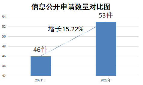 (二)規范依申請公開。編制依申請公開“無差錯高標準”清單、規范要求等,完善會商機制,嚴格規范辦理流程和文書格式,全面提升規范化水平。2022年,共辦理政府信息公開申請53件,比去年增加15.22%,因依申請公開引發的行政復議案件0件,行政訴訟案件0件,保障企業和群眾知情權。
