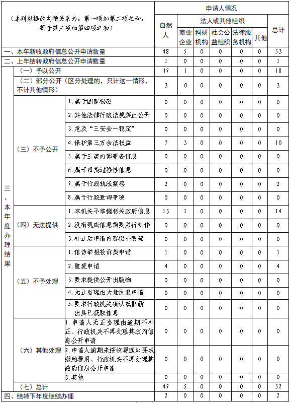 本年度報告根據《中華人民共和國政府信息公開條例》和《國務院辦公廳政府信息與政務公開辦公室關于印發<中華人民共和國政府信息公開工作年度報告格式>的通知》(國辦公開辦函〔2021〕30號)相關要求編制,內容包括總體情況、主動公開政府信息情況、收到和處理政府信息公開申請情況、政府信息公開行政復議和行政訴訟情況、存在的主要問題及改進情況、其他需要報告的事項等六個部分。本年度報告中所列數據統計期限從2022年1月1日到2022年12月31日。