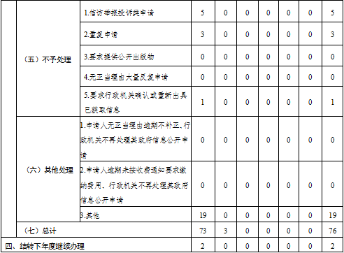 三、收到和處理政府信息公開申請情況統計表