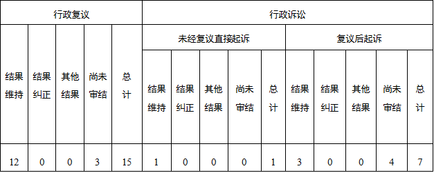 四、因政府信息公開工作被申請行政復議、提起行政訴訟情況統計表